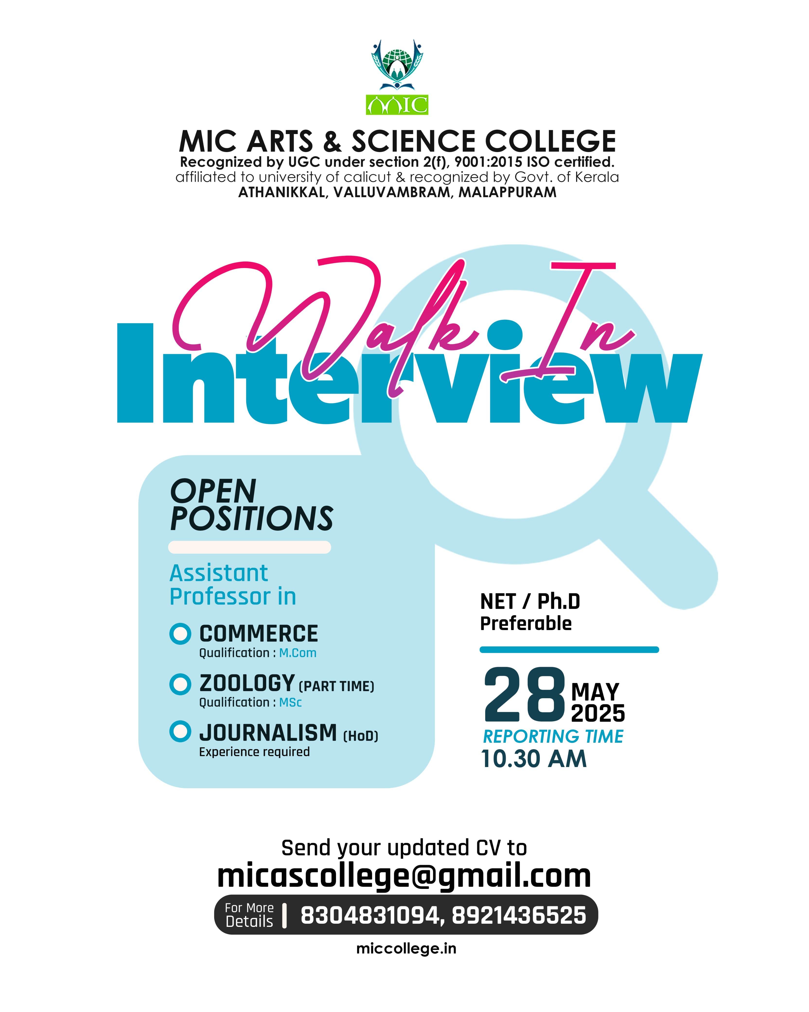 | 12 | Assistant Professor in Malayalam | 2025-04-19 | TS | N/A | Advertisement | Closed | 2025-04-01 |